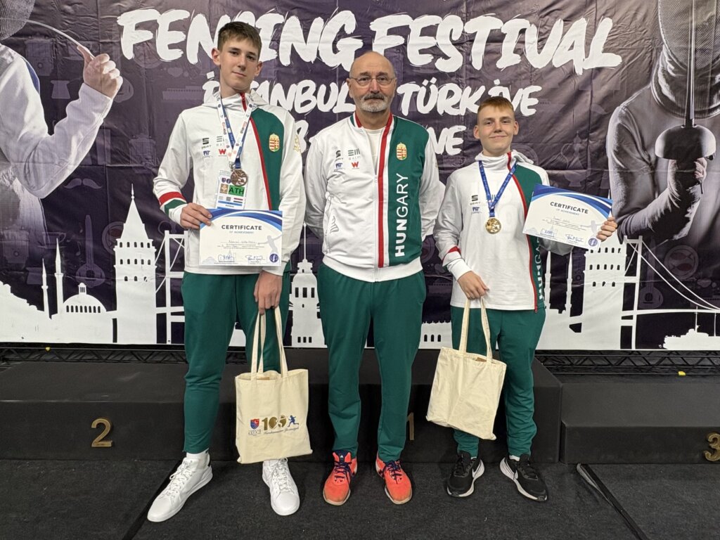 Az isztambuli U14-es Európai Fesztivál második napján is a párbajtőrözők voltak a magyar főszereplők! Budai István két tanítványa, Jécsi Dániel és Wentzel Edmond az elődöntőig menetelt, ahol egymással kerültek szembe. Előbbi győzött, és aztán a döntőben is nyert, ezzel megszületett a magyar aranyérem az eseményen!