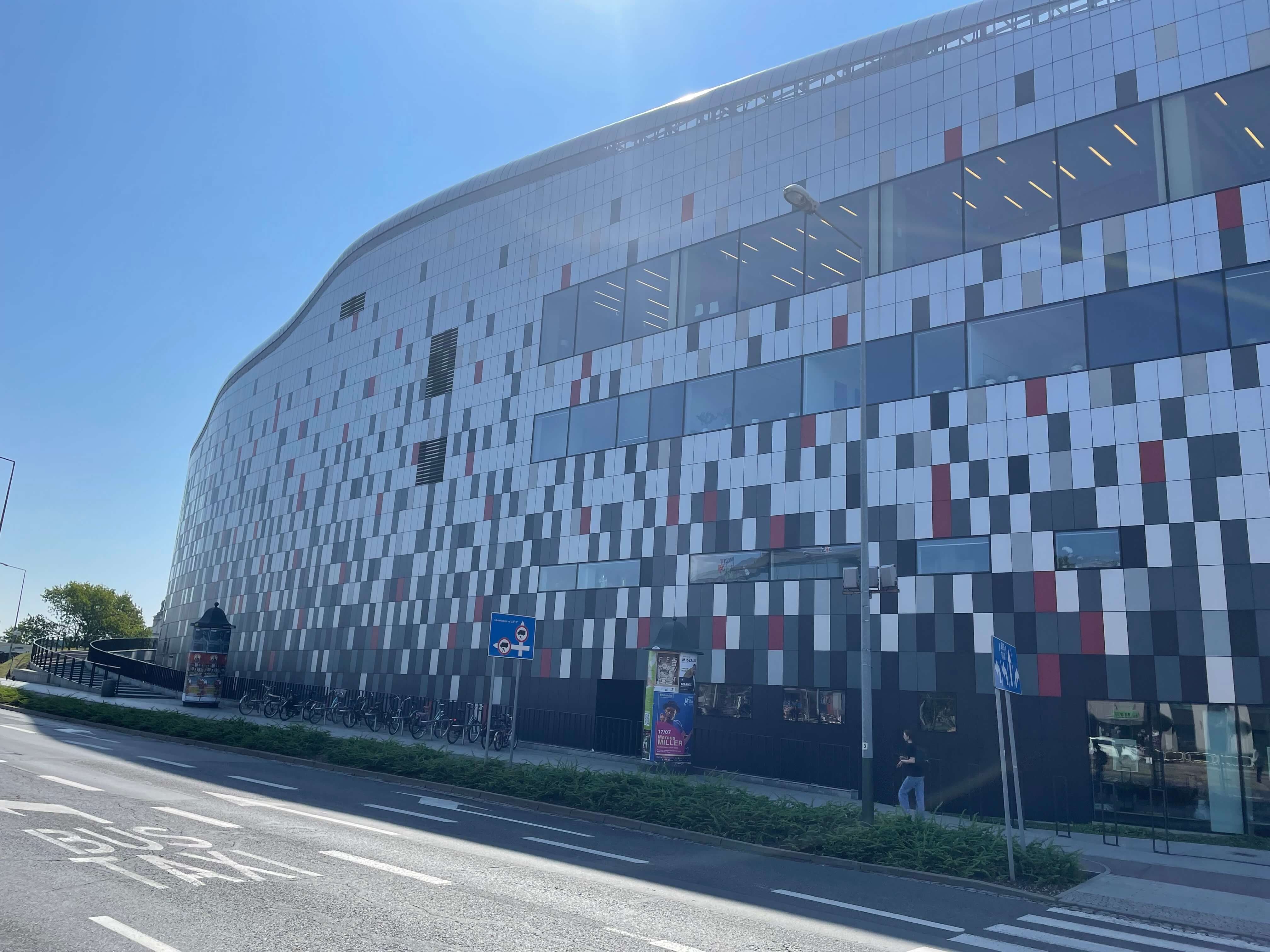 Az Európa Játékok sajtóközpontja – kívülről. Belülről is ultramodern és minden igényt kielégítő.
