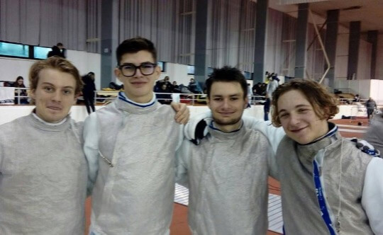 Makk Domonkos, Szemes Gergő, Horváth Soma, Mihályi Andor – a kadet európai körversenyen aranyérmes férfi tőrcsapat!