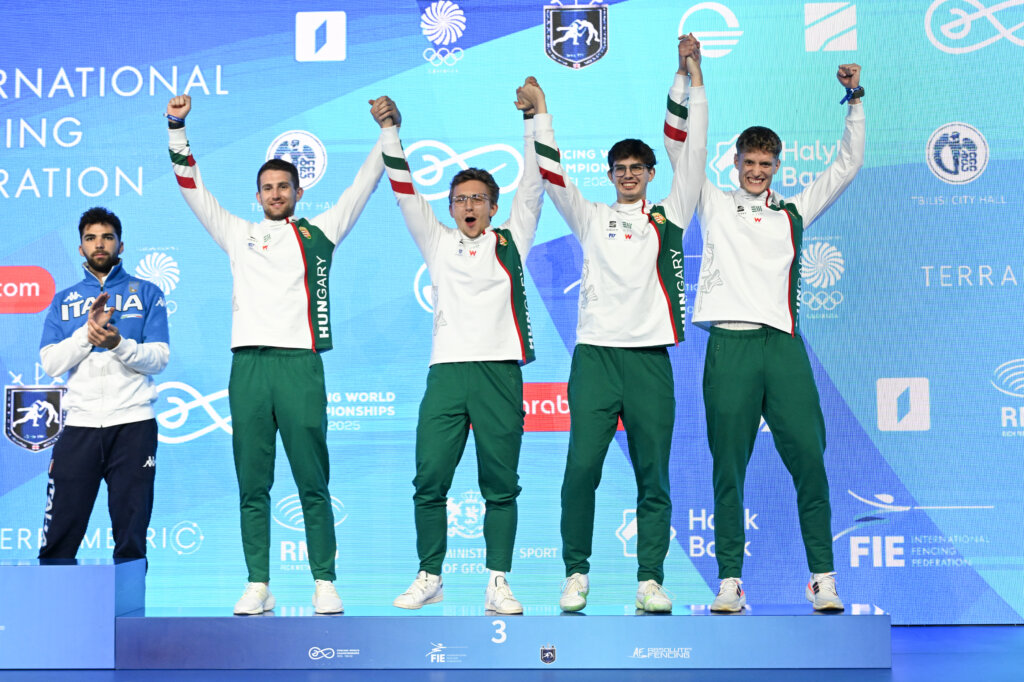 Ha valaki azt mondja a tbiliszi világbajnokság előtt, hogy a magyar küldöttség első két érmét a férfi tőrözők hozzák, akkor azért furán néztünk volna az illetőre… Aztán Szemes Gergő 52 év után nyert egy egyéni bronzot, a Dósa Dániel, Mihályi Andor, Szemes Gergő, Tóth Gergely összeállítású csapat pedig bravúrt bravúrra halmozva, elképesztő vívással, 38 esztendő után lett vb-harmadik! A fenti nevek mögé azonnal tegyük hozzá a válogatott edző Szirmai Benedeket, továbbá Marco Goncalves, Mazza Lorenzo és Szabados Kristóf edzőket, valamint Boczkó Gábor szövetségi kapitányt. A fél évszázada várt sikerekhez egyébként még jó néhányan kellettek, mindenkinek gratulálunk!