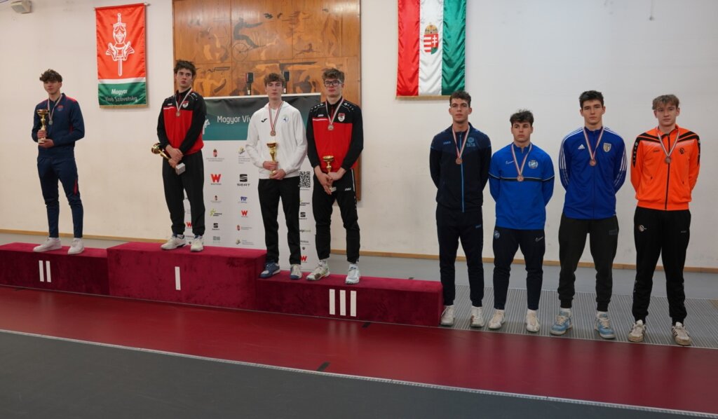 Persze, messze nem ez volt a lényeg ezen a napon, a korosztály számára a legfontosabb hazai eseményt rendezték ebben az idényben. Aztán a férfiaknál egy kadet állhatott az idősebb korosztály dobogójának a tetejére. A különleges stílusban, francia markolattal és nagyon eredményesen vívó honvédos tehetség, Petrovszki Áron nyerte a versenyt, egész napon át magabiztos szerepléssel. A döntőben a vasasos Antal Mátét múlta felül, míg a két bronzérmes a junior Európa-bajnok Pelle Domonkos és az előző Mk-n első helyen végző, szolnoki Nagy Kornél lett, gratulálunk!