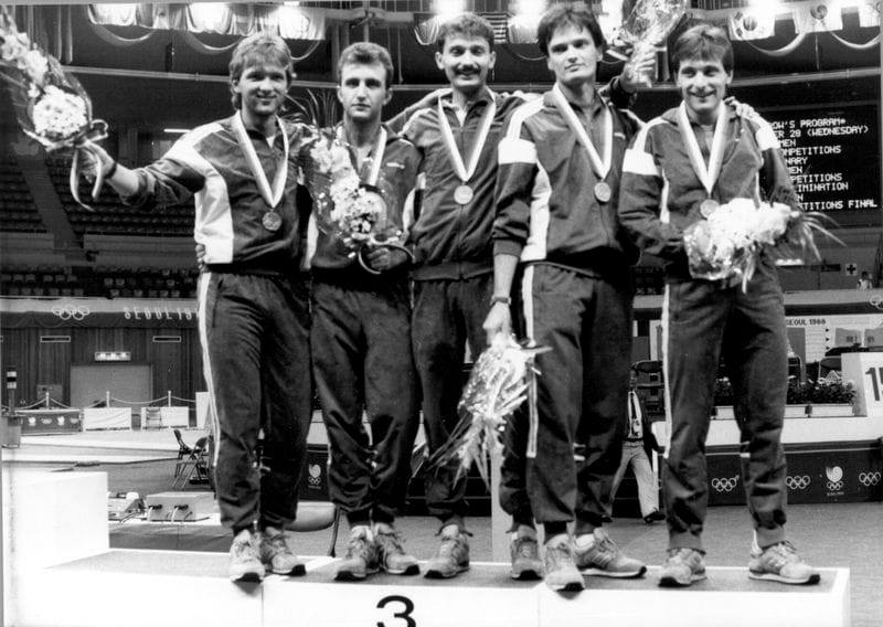A szöuli, olimpiai bronzérmes tőrcsapat (Érsek Zsolt, Szekeres Pál, Szelei István, Gtai Róbert, Busa István)…