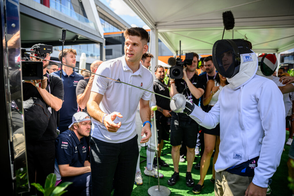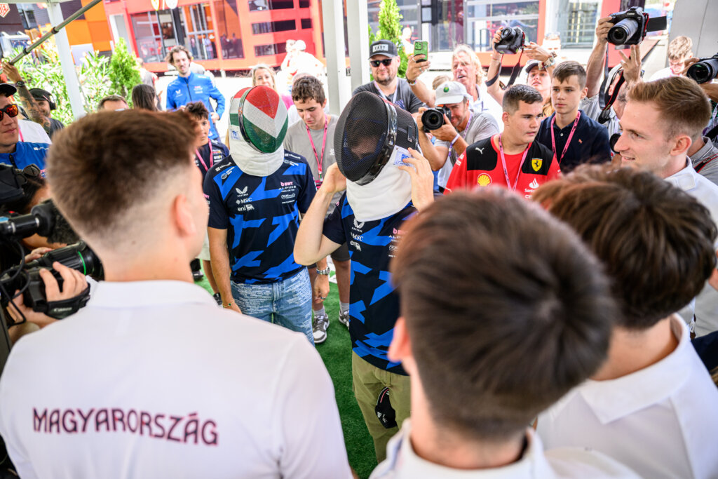 Budapesten, a hétvégi futamot megelőzően az Alpine F1 Team két pilótája, Pierre Gasly és Franco Colapinto kapott kedvet a víváshoz. Meg is érkezett a meghívás Tóth Anitától, az esemény sajtófőnökétől az olimpiai bajnok férfi párbajtőrcsapat részére. És mivel a fiúk nem mellesleg az autósport nagy kedvelői, örömmel bólintottak rá azonnal a lehetőségre, elvégre a vívólecke mellett így az F1 semmihez sem hasonlító világába is betekintést nyerhettek. Egyetlen, “apró” bökkenő azért akadt: a vívóbemutatót értelemszerűen a versenyek elé, csütörtökre tették.