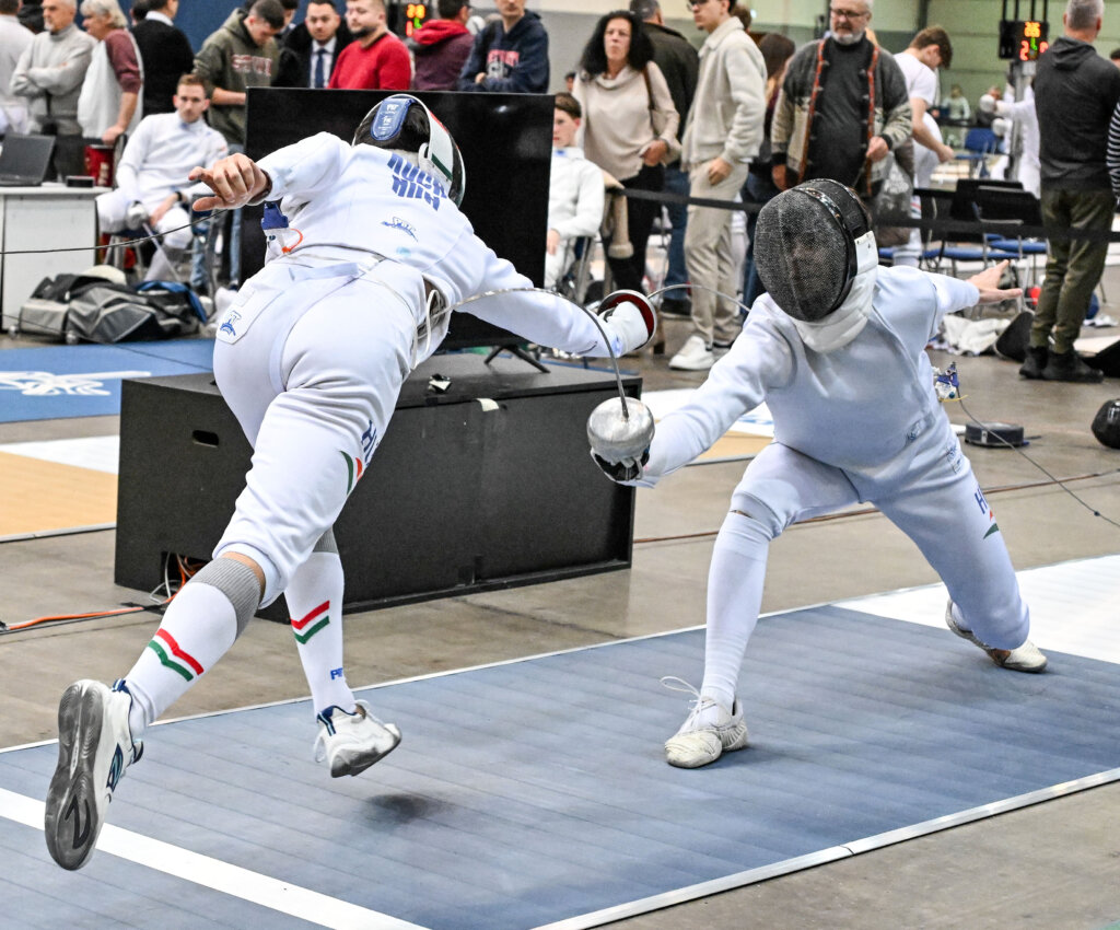 Érdekességek, persze, mint ebben a fegyvernemben mindig, most is akadtak. A junior válogatott Antal Máté egy tussal győzte le a 63 éves veterán világbajnok Bárdi Róbertet, a két Somody-testvér, Soma és Bonca a 128 között összekerült egymással, ennyi érdekesség jutott mára a máskor mindig rengeteg meglepetéssel szolgáló fegyvernemnek.