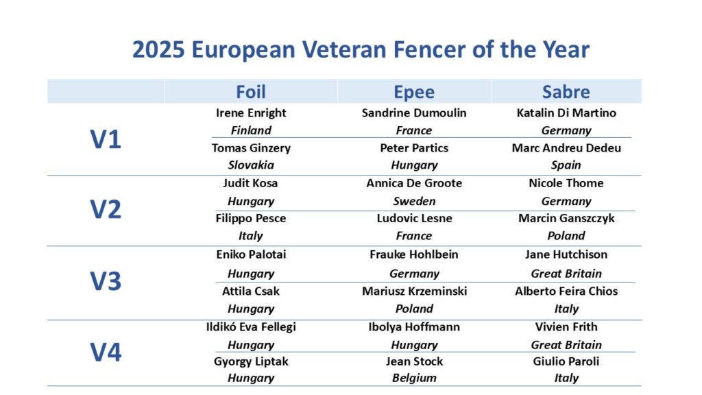 Az utolsó versenynap előtt már hat éremnél (1-2-3) tart a magyar küldöttség a plovdivi veterán Európa-bajnokságon. Szombaton a férfi párbajtőr +50-es kategóriában a korábbi válogatott öttusázó, Kállai Ákos, míg a női tőr +60-as kategóriában Palotai Enikő végzett a harmadik helyen. Emellett számos magyar veterán nyerte el az összesített pontverseny alapján az “Év veterán vívója” címet, gratulálunk!