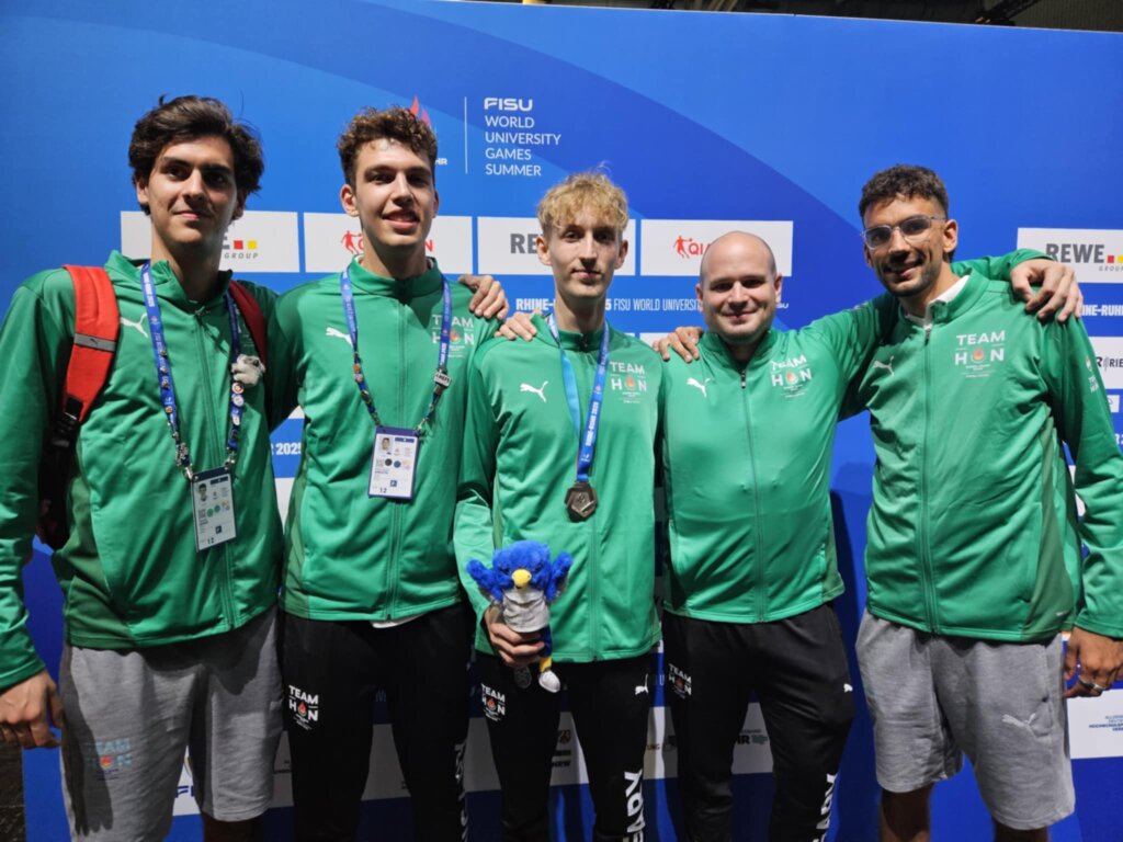 Junior Eb-ezüst, junior vb-bronz, Universiade-ezüst – töretlen a pályafutás, csak így tovább, Somody Soma! A Rajna-Ruhr Vidék Egyetemi Világjátéka vívóversenyének második napján, a nyitány ezüst- és bronzérmét követően ismét remekelt a magyar utánpótlás. Ezúttal az MTK 21 éves vívója, Somody Soma révén. Tehetségünk a 32-ért kezdett a direkt kieséses táblán, és spanyol riválisának nem adott esélyt. Utána viszont a veretlen csoportkörös ukrán Opanaszenko következett – na, az még simább lett, 15:6. Tovább nehezedett a feladat: az olasz második hullám egyik legjobbja, Mencarelli jött a nyolcaddöntőben, ez már szorosabb volt: 15:13. Az éremért aztán magyar-magyar derbi következett Kovács Gergellyel. Valakinek nyernie kellett, Soma lett az (15:12). Ezzel az érem már zsebben volt Bojti Dániel tanítványának, és a kora esti elődöntőben sikerült fényesítenie azt! Korosztályos riválisát, a svájci Sven Vineist verte 15:13-ra egy nagyon látványos és izgalmas asszóban. A fináléban nem került fel az i-re a pont: az orosz Svelidze végig vezetve nyert 15:11-re. Soma többször megközelítette riválisát, de beérnie nem sikerült. Ugyanakkor azt nem mondhatjuk, hogy így ezüsttel kellett beérnie. Ez a második helyezés ugyanis nagyszerű eredmény, gratulálunk mesternek és tanítványának!