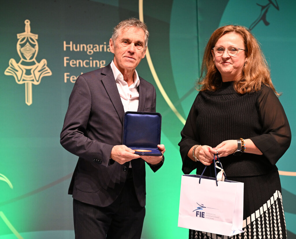 Tamás Henriette a FIE alelnökeként gratulált az olimpiai bajnok és hatszoros világbajnok Nébald Györgynek abból az alkalomból, hogy a nemzetközi szövetség ebben az évben a fantasztikus kardozót beválasztotta a sportági Hall of Fame-be.